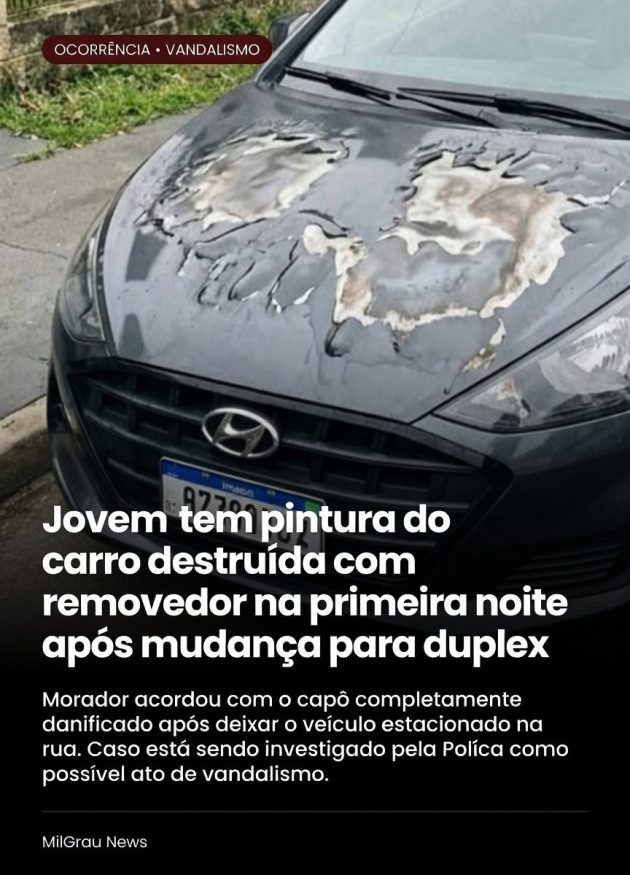 Um morador recém-chegado num conjunto de casas geminadas resolveu deixar seu carro estacionado na calçada, já que a garagem ainda estava cheia de caixas da mudança. O vizinho da casa ao lado, que costumava utilizar aquele trecho da rua como estacionamento particular para suas visitas, não gostou de “perder a vaga”. Durante a madrugada, ele despejou uma garrafa de removedor de tintas automotivo (solvente puro) pela fresta do muro, atingindo diretamente o capô do veículo do novo morador. A pintura enrugou e derreteu até chegar à lataria.